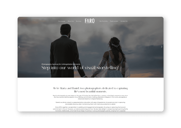Faro Studio is a photography studio based in Australia that needed a website to showcase their work in a visually appealing portfolio. I led both the design and technical execution of the WordPress site, structuring it to highlight the imagery and capture the brand’s identity. I created user-friendly sections to let clients easily explore services and work examples, and added a functional contact form to support client inquiries.